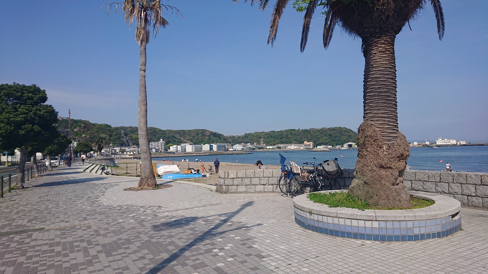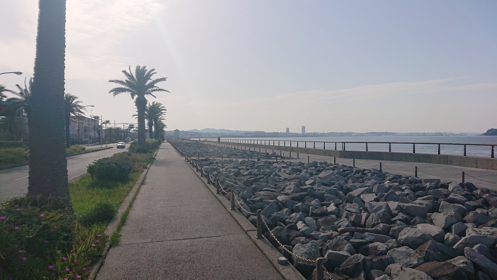 横須賀の馬堀海岸まで来ました。ここは広々とした遊歩道が作ってあるのでいつ来ても散歩したりジョギングしたりしてる人がいます
