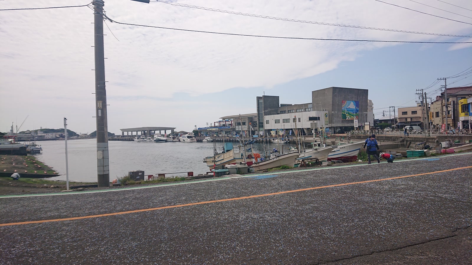 少し進んで久里浜です。久里浜からは千葉に渡るフェリーが出ていて、千葉でゴルフなどの行楽を楽しむ方がここから乗っていきます。自転車勢も千葉に走りに行くときに利用しているようで、僕もここから金谷に渡って千葉をぐるっと走って大洗まで行ったことがあります。東京湾は東西が狭いので陸路を千葉まで行くより近いですし、千葉の北西部の走ってもあまり楽しくない辺りをスキップできるのでちょうど良いんですよね