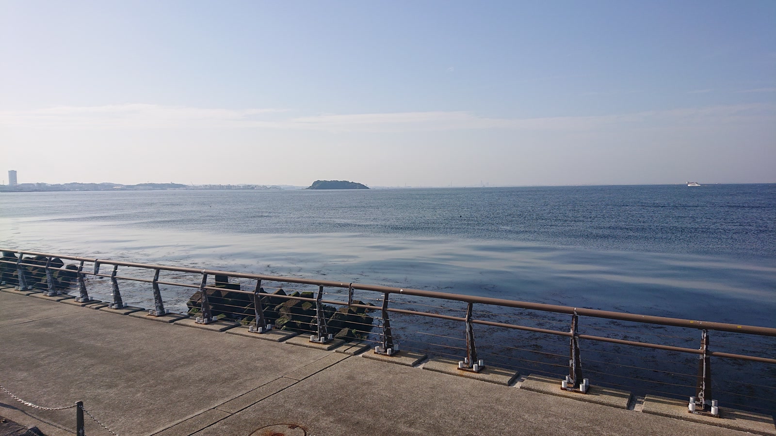 海の向こうに猿島が見えます。かつての日本軍が防衛施設をつくっていたんですが、いまは完全に放棄されていてラピュタの天空城をイメージさせるちょうど良い寂れ具合になってるんだそうです。ビーチもあるので夏には海水浴場になっているようで、船で渡っていろいろ楽しめるようです。一度行ってみたいです