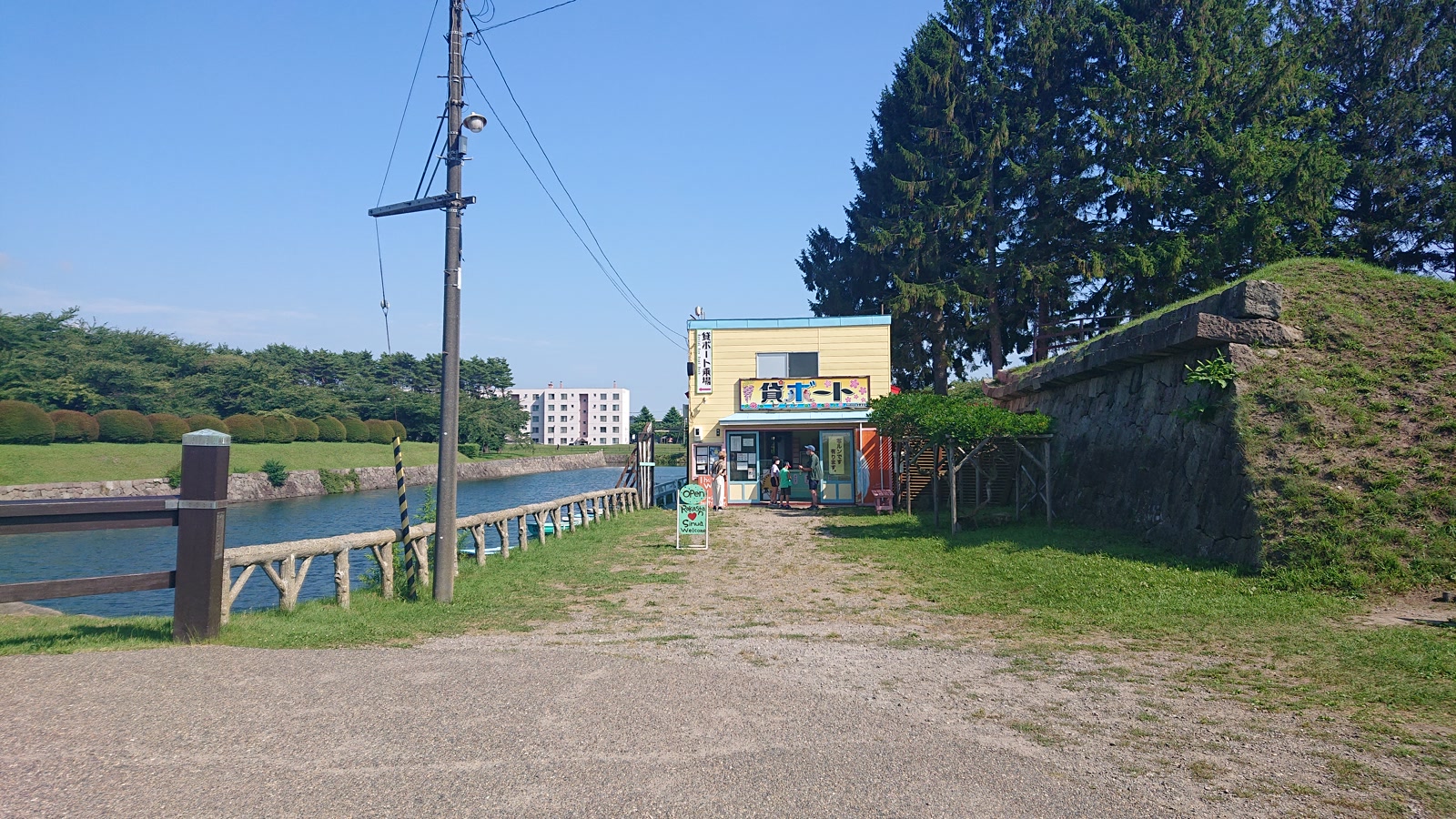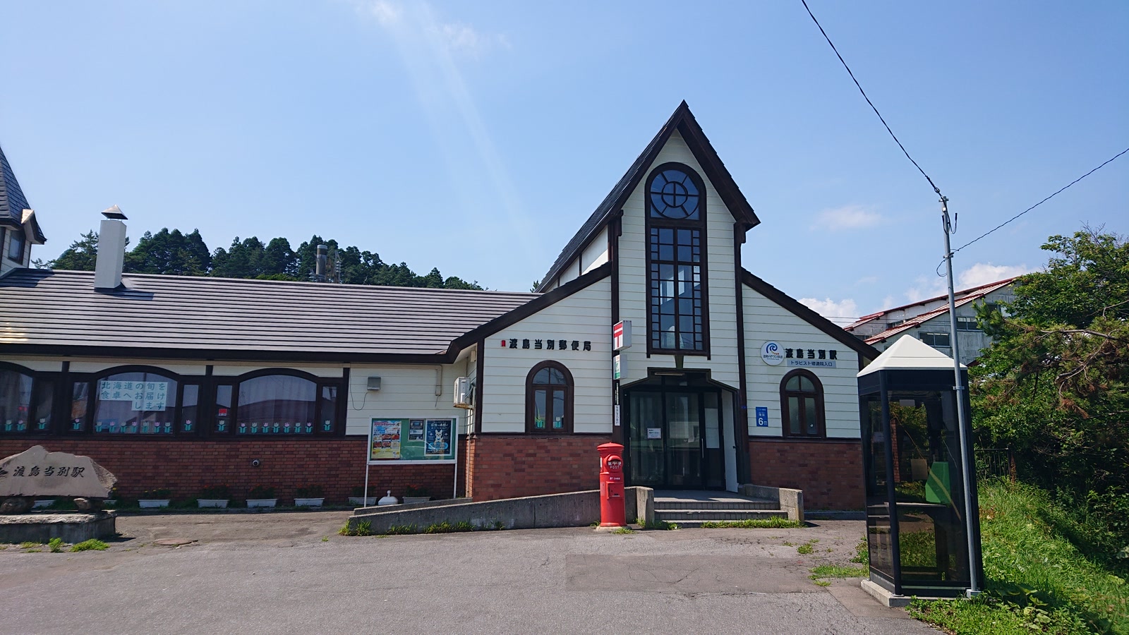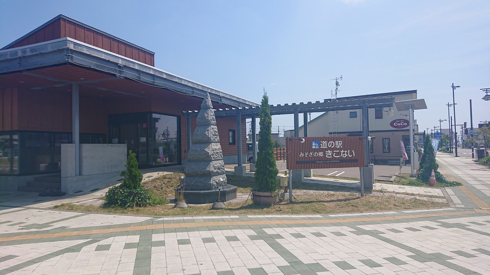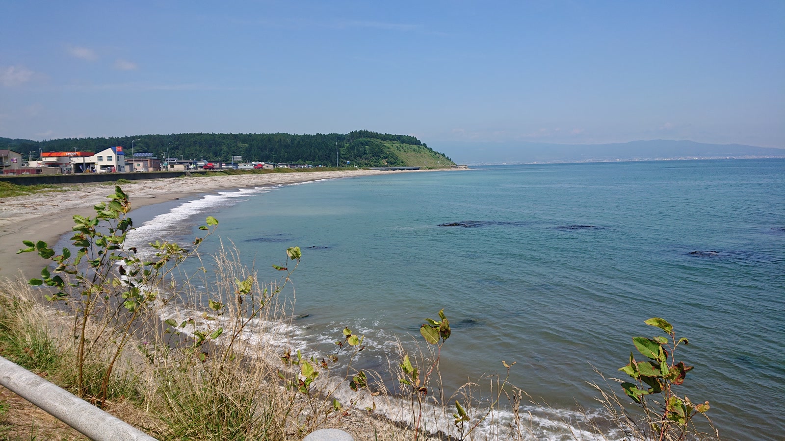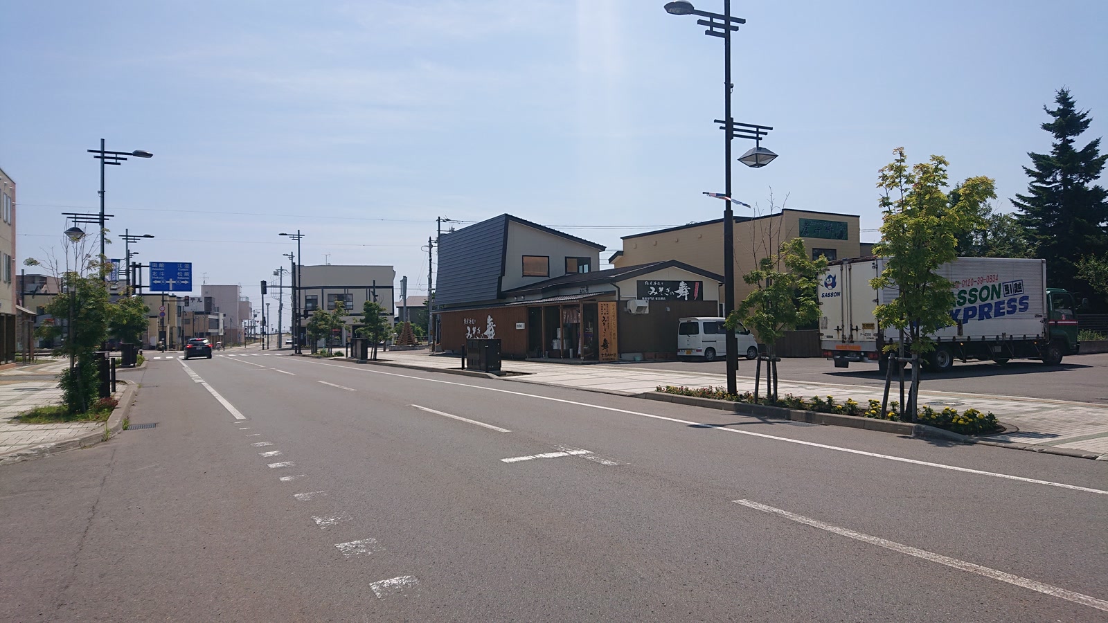 輪行解除してさっそく走っていきましょう。期待通り本州よりは遥かに涼しいので、これなら楽しく走っていけそうです。上の写真は駅を出てすぐのところですが、駅前は小規模ながら市街地になっていて飲食店もポツポツとあるようです。たまに駅前ロータリーを出たら後は野原という新幹線駅もありますが、木古内はちゃんと街があります