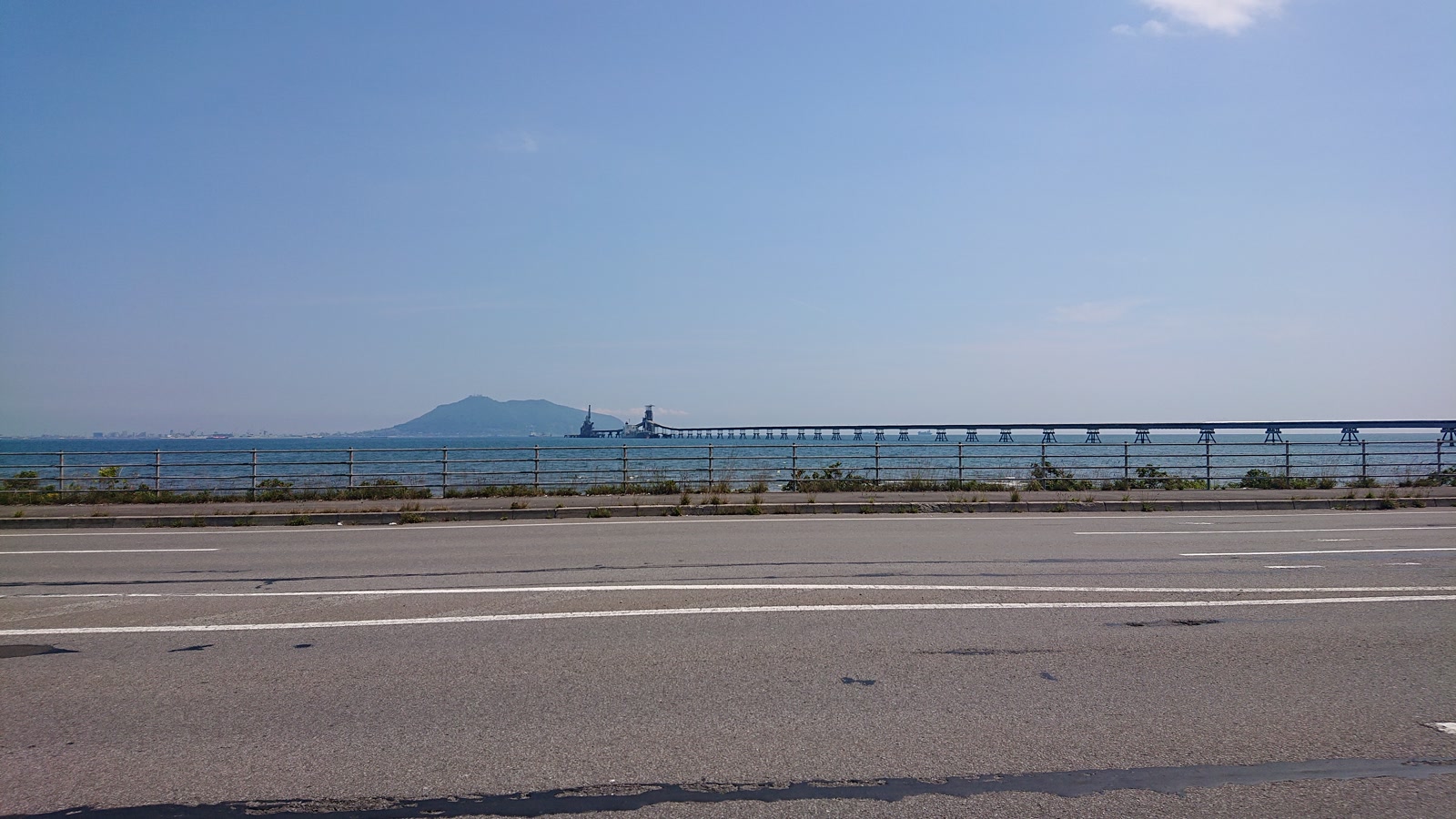砂を汲み上げて使っているのかと思ったんですがそうではなくて、沖に停泊した大型船にセメントを供給するための桟橋なんだそうです。2kmあるという事ですが、もっと長く見えますね