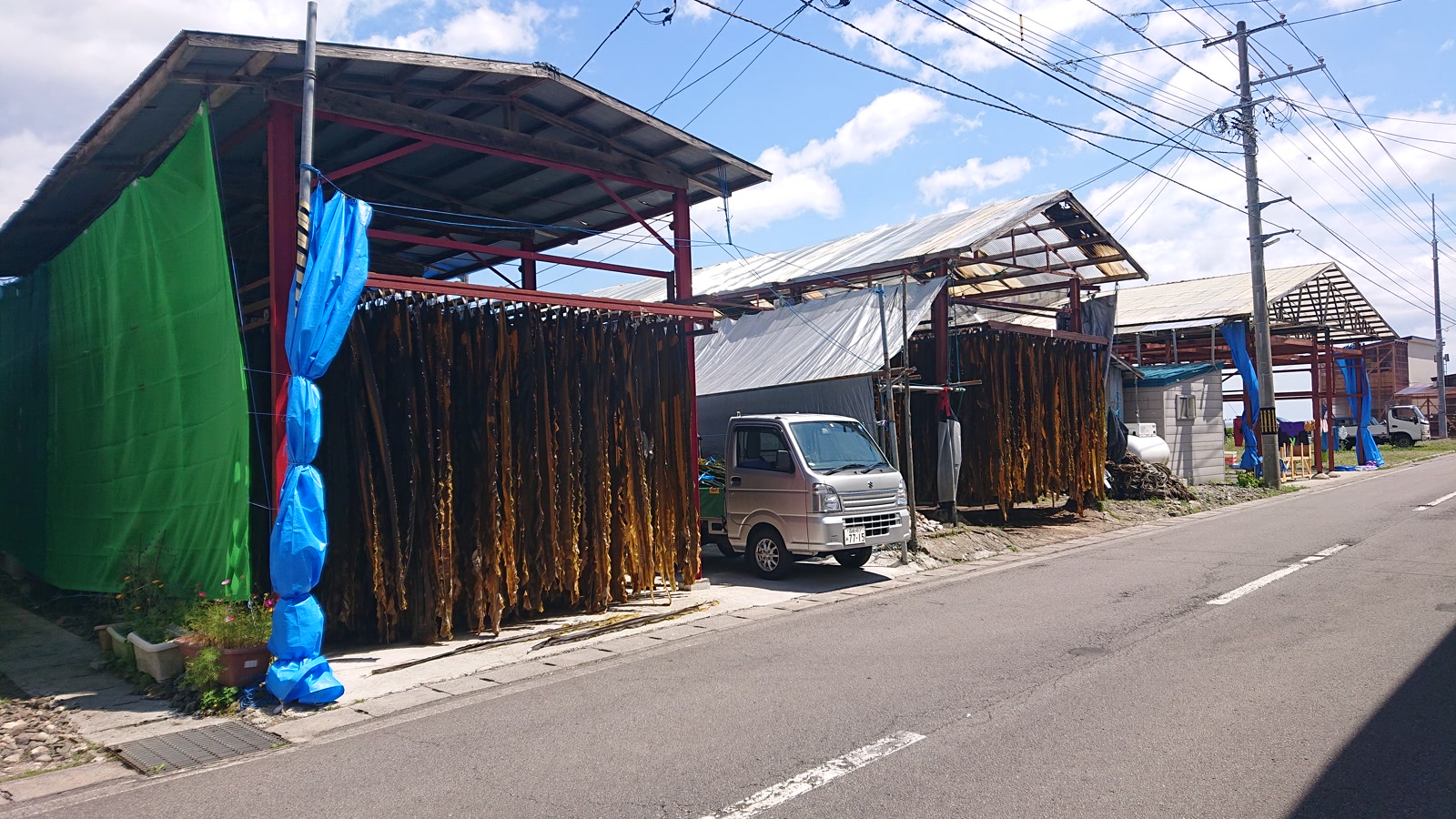 しばらく走ったら、あちこちで大量の昆布を干している集落に着きました