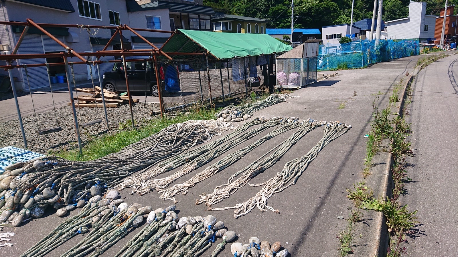 網が干してありますね